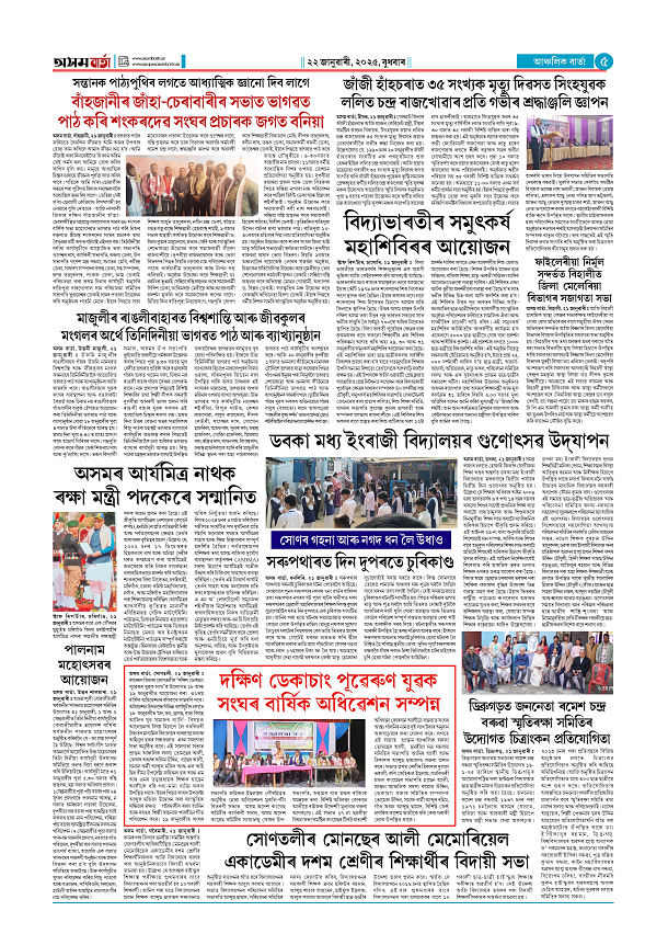 22-01-2025 Page: 5 January 22, 2025 Asom Barta Page 1Page 2Page 3Page 4Page 5Page 6Page 7 Thumbnails × 22-01-2025 Page 1Page 2Page 3Page 4Page 5Page 6Page 7 << First << 4 5 >> Last >> << First << 5 >> Last >> Hide Page 1Page 2Page 3Page 4Page 5Page 6Page 7