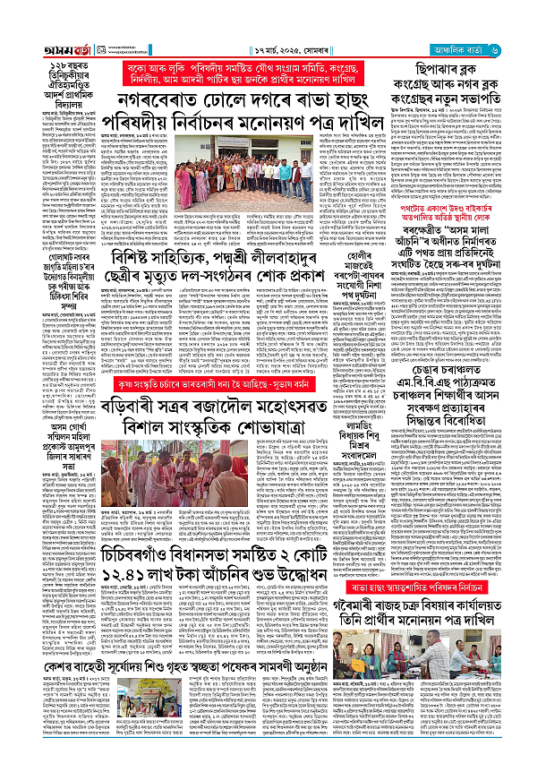 17-03-2025 Page: 6 March 17, 2025 Asom Barta Page 1Page 2Page 3Page 4Page 5Page 6Page 7Page 8 Thumbnails × 17-03-2025 Page 1Page 2Page 3Page 4Page 5Page 6Page 7Page 8 << First << 5 6 >> Last >> << First << 6 >> Last >> Hide Page 1Page 2Page 3Page 4Page 5Page 6Page 7Page 8