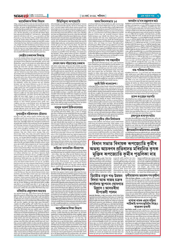 22-03-2025 Page: 7 March 22, 2025 Asom Barta Page 1Page 2Page 3Page 4Page 5Page 6Page 7Page 8 Thumbnails × 22-03-2025 Page 1Page 2Page 3Page 4Page 5Page 6Page 7Page 8 << First << 6 7 >> Last >> << First << 7 >> Last >> Hide Page 1Page 2Page 3Page 4Page 5Page 6Page 7Page 8