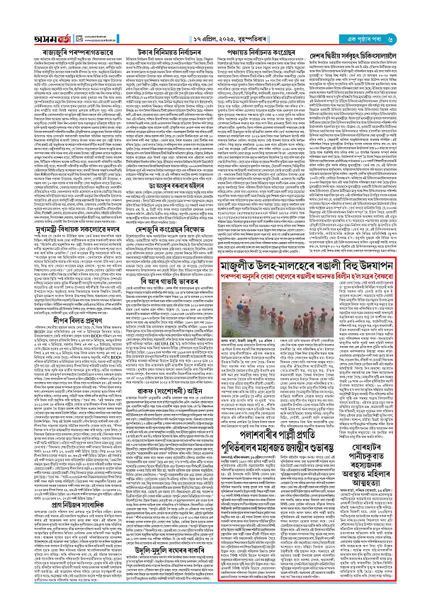17-04-2025 Page: 6 April 17, 2025 Asom Barta Page 1Page 2Page 3Page 4Page 5Page 6Page 7 Thumbnails × 17-04-2025 Page 1Page 2Page 3Page 4Page 5Page 6Page 7 << First << 5 6 >> Last >> << First << 6 >> Last >> Hide Page 1Page 2Page 3Page 4Page 5Page 6Page 7