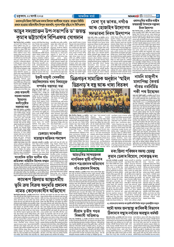 22-08-2025 Page: 4 August 22, 2025 Asom Barta Page 1Page 2Page 3Page 4Page 5Page 6Page 7Page 8 Thumbnails × 22-08-2025 Page 1Page 2Page 3Page 5Page 6Page 7Page 8Page 9 << First << 3 4 >> Last >> << First << 4 >> Last >> Hide Page 1Page 2Page 3Page 5Page 6Page 7Page 8Page 9