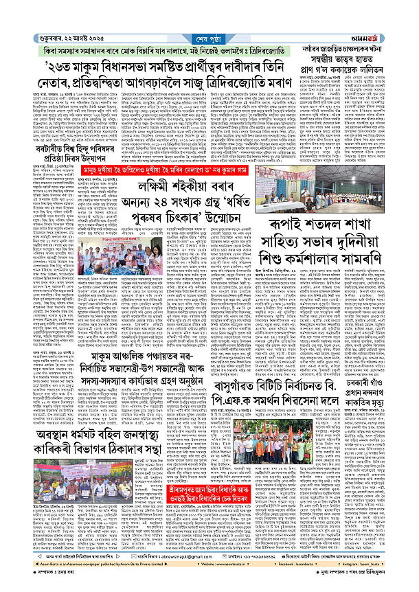 22-08-2025 Page: 8 August 22, 2025 Asom Barta Page 1Page 2Page 3Page 4Page 5Page 6Page 7Page 8 Thumbnails × 22-08-2025 Page 1Page 2Page 3Page 5Page 6Page 7Page 8Page 9 << First << 7 8 >> Last >> << First << 8 >> Last >> Hide Page 1Page 2Page 3Page 5Page 6Page 7Page 8Page 9