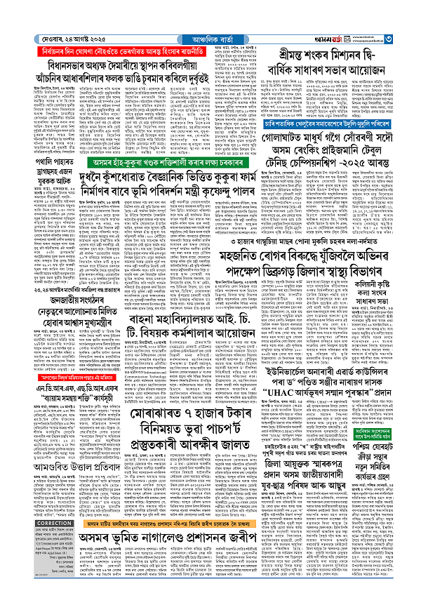 24-08-2025 Page: 3 August 24, 2025 Asom Barta Page 1Page 2Page 3Page 4Page 5Page 6Page 7Page 8 Thumbnails × 24-08-2025 Page 1Page 2Page 3Page 4Page 5Page 6Page 7Page 8 Full PDF << First << 2 3 >> Last >> << First << 3 >> Last >> Hide Page 1Page 2Page 3Page 4Page 5Page 6Page 7Page 8