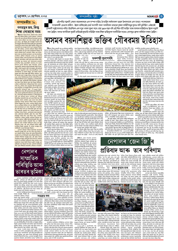 12-09-2025 Page: 4 September 12, 2025 Asom Barta Page 1Page 2Page 3Page 4Page 5Page 6Page 7Page 8 Thumbnails × 12-09-2025 Page 1Page 2Page 3Page 4Page 5Page 6Page 7Page 8 Full PDF << First << 3 4 >> Last >> << First << 4 >> Last >> Hide Page 1Page 2Page 3Page 4Page 5Page 6Page 7Page 8