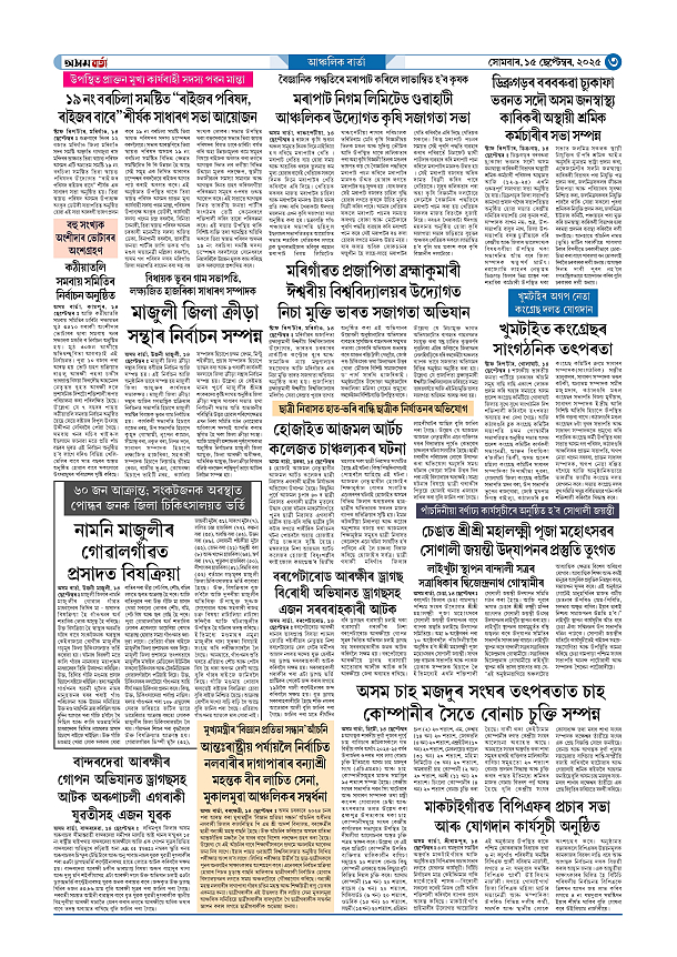 15-09-2025 Page: 3 September 15, 2025 Asom Barta Page 1Page 2Page 3Page 4Page 5Page 6Page 7Page 8 Thumbnails × 15-09-2025 Page 1Page 2Page 3Page 4Page 5Page 6Page 7Page 8 Full PDF << First << 2 3 >> Last >> << First << 3 >> Last >> Hide Page 1Page 2Page 3Page 4Page 5Page 6Page 7Page 8