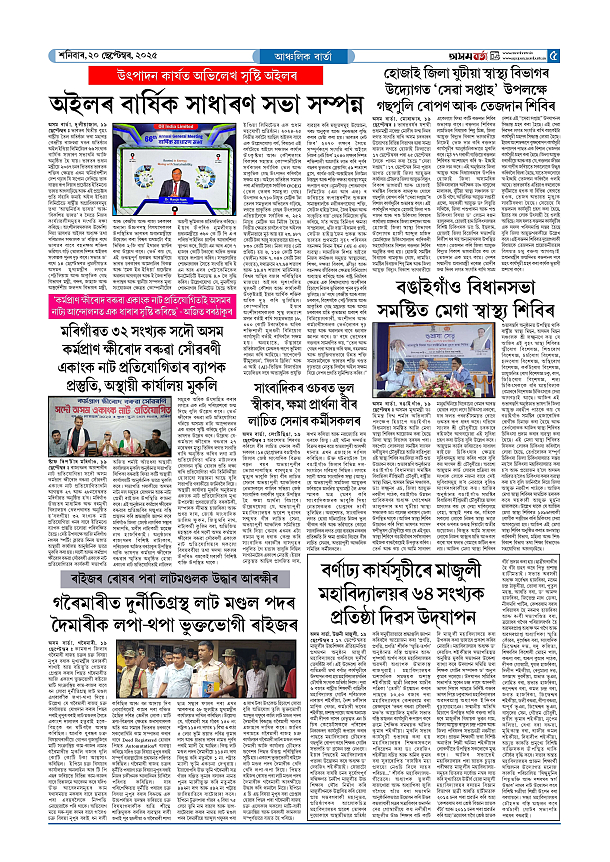 20-09-2025 Page: 5 September 20, 2025 Asom Barta Page 1Page 2Page 3Page 4Page 5Page 6Page 7 Thumbnails × 20-09-2025 Page 1Page 2Page 3Page 4Page 5Page 6Page 7 Full PDF << First << 4 5 >> Last >> << First << 5 >> Last >> Hide Page 1Page 2Page 3Page 4Page 5Page 6Page 7