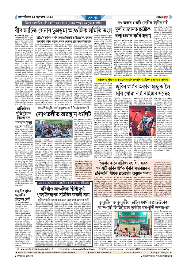 25-09-2025 Page: 7 September 25, 2025 Asom Barta Page 1Page 2Page 3Page 4Page 5Page 6Page 7 Thumbnails × 25-09-2025 Page 1Page 2Page 3Page 4Page 5Page 6Page 7 Full PDF << First << 6 7 >> Last >> << First << 7 >> Last >> Hide Page 1Page 2Page 3Page 4Page 5Page 6Page 7
