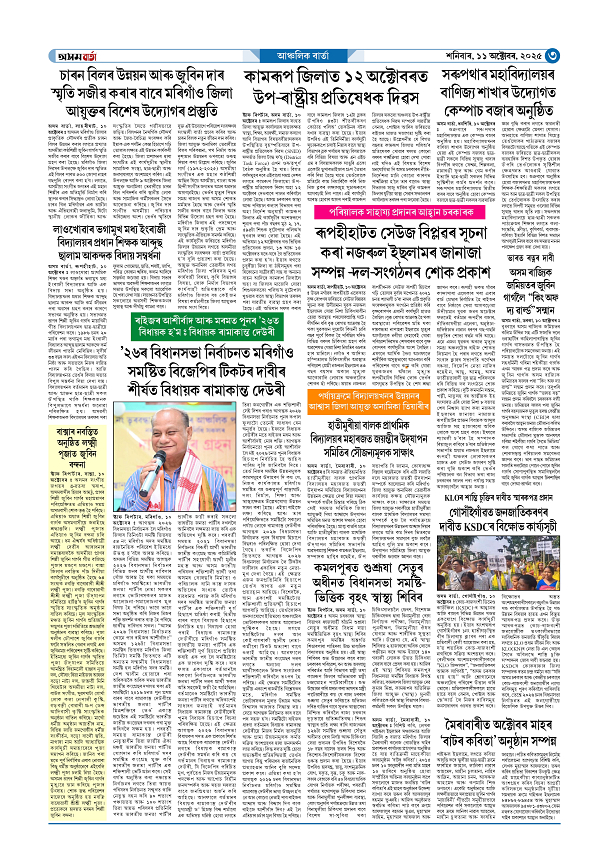 11-10-2025 Page: 3 October 11, 2025 Asom Barta Page 1Page 2Page 3Page 4Page 5Page 6Page 7 Thumbnails × 11-10-2025 Page 1Page 2Page 3Page 4Page 5Page 6Page 7 << First << 2 3 >> Last >> << First << 3 >> Last >> Hide Page 1Page 2Page 3Page 4Page 5Page 6Page 7