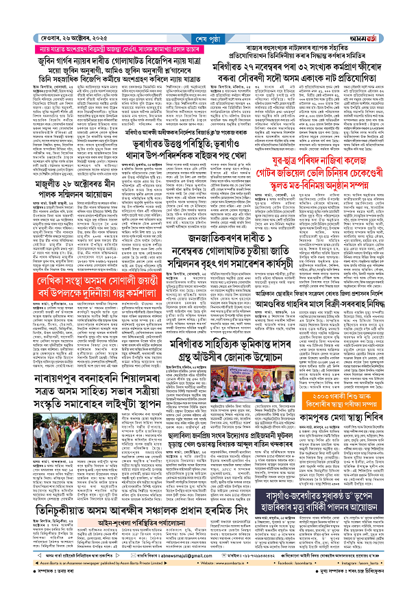 26-10-2025 Page: 7 October 26, 2025 Asom Barta Page 1Page 2Page 3Page 4Page 5Page 6Page 7 Thumbnails × 26-10-2025 Page 1Page 2Page 3Page 4Page 5Page 6Page 7 << First << 6 7 >> Last >> << First << 7 >> Last >> Hide Page 1Page 2Page 3Page 4Page 5Page 6Page 7