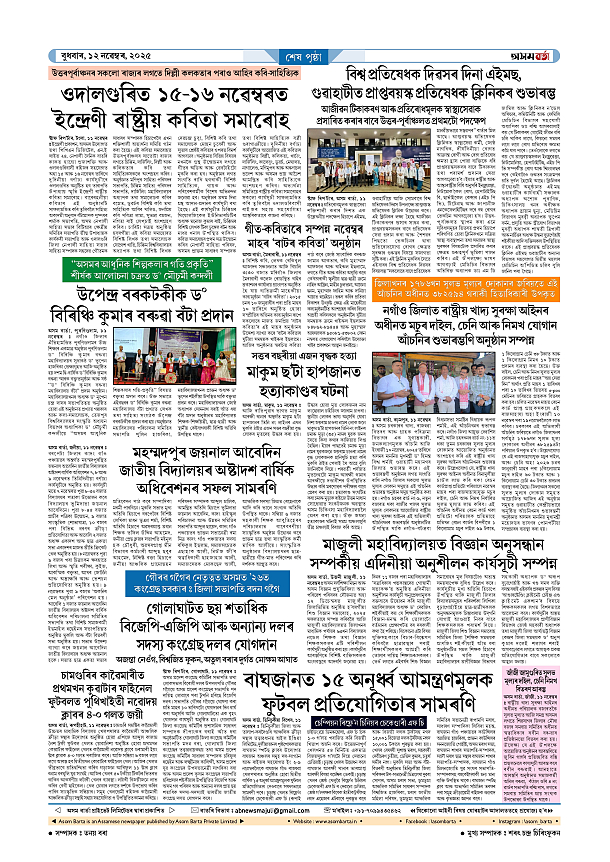 12-11-2025 Page: 7 November 12, 2025 Asom Barta Page 1Page 2Page 3Page 4Page 5Page 6Page 7 Thumbnails × 12-11-2025 Page 1Page 2Page 3Page 4Page 5Page 6Page 7 Full PDF << First << 6 7 >> Last >> << First << 7 >> Last >> Hide Page 1Page 2Page 3Page 4Page 5Page 6Page 7
