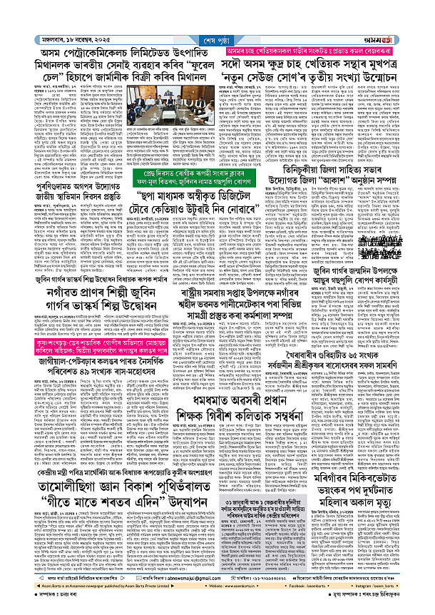 18-11-2025 Page: 7 November 18, 2025 Asom Barta Page 1Page 2Page 3Page 4Page 5Page 6Page 7 Thumbnails × 18-11-2025 Page 1Page 2Page 3Page 4Page 5Page 6Page 7 Full PDF << First << 6 7 >> Last >> << First << 7 >> Last >> Hide Page 1Page 2Page 3Page 4Page 5Page 6Page 7
