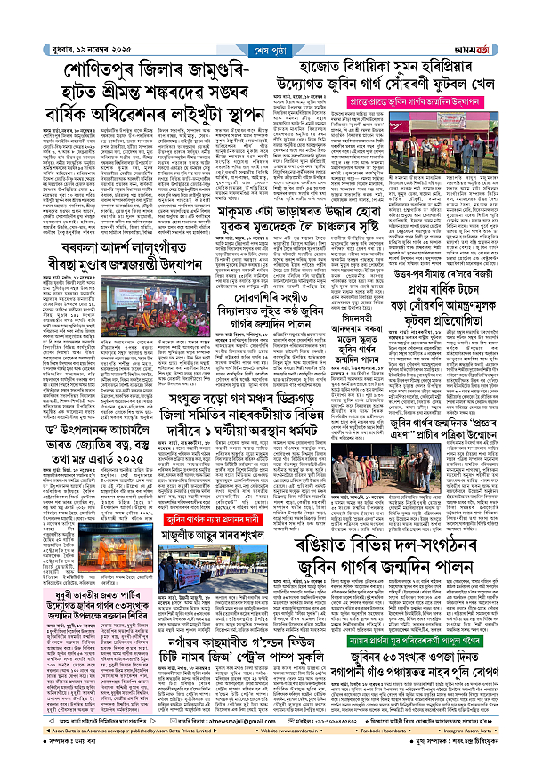 19-11-2025 Page: 7 November 19, 2025 Asom Barta Page 1Page 2Page 3Page 4Page 5Page 6Page 7 Thumbnails × 19-11-2025 Page 1Page 2Page 3Page 4Page 5Page 6Page 7 Full PDF << First << 6 7 >> Last >> << First << 7 >> Last >> Hide Page 1Page 2Page 3Page 4Page 5Page 6Page 7