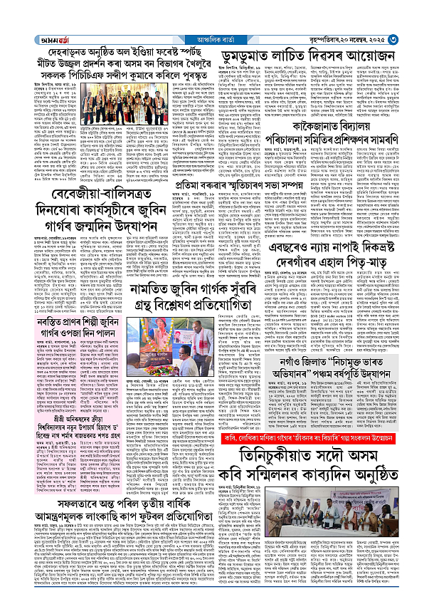20-11-2025 Page: 3 November 20, 2025 Asom Barta Page 1Page 2Page 3Page 4Page 5Page 6 Thumbnails × 20-11-2025 Page 1Page 2Page 3Page 4Page 5Page 6 Full PDF << First << 2 3 >> Last >> << First << 3 >> Last >> Hide Page 1Page 2Page 3Page 4Page 5Page 6