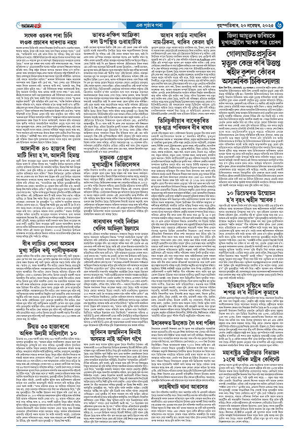 20-11-2025 Page: 6 November 20, 2025 Asom Barta Page 1Page 2Page 3Page 4Page 5Page 6 Thumbnails × 20-11-2025 Page 1Page 2Page 3Page 4Page 5Page 6 Full PDF << First << 5 6 >> Last >> << First << 6 >> Last >> Hide Page 1Page 2Page 3Page 4Page 5Page 6