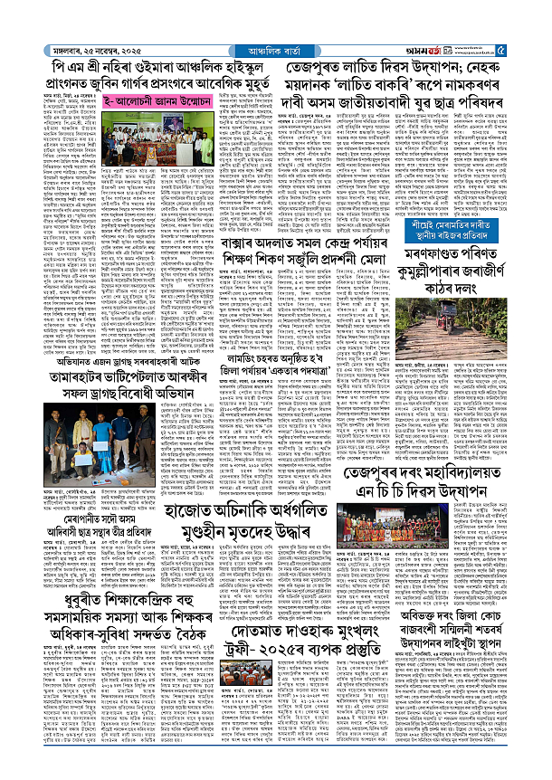 25-11-2025 Page: 5 November 25, 2025 Asom Barta Page 1Page 2Page 3Page 4Page 5Page 6Page 7 Thumbnails × 25-11-2025 Page 1Page 2Page 3Page 4Page 5Page 6Page 7 Full PDF << First << 4 5 >> Last >> << First << 5 >> Last >> Hide Page 1Page 2Page 3Page 4Page 5Page 6Page 7