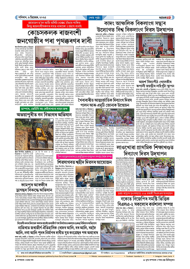 06-12-2025 Page: 6 December 06, 2025 Asom Barta Page 1Page 2Page 3Page 4Page 5Page 6 Thumbnails × 06-12-2025 Page 1Page 2Page 3Page 5Page 6Page 7 Full PDF << First << 5 6 >> Last >> << First << 6 >> Last >> Hide Page 1Page 2Page 3Page 5Page 6Page 7