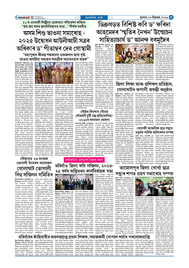 17-12-2025 Page: 3 December 17, 2025 Asom Barta Page 1Page 2Page 3Page 4Page 5Page 6Page 7Page 8 Thumbnails × 17-12-2025 Page 1Page 2Page 3Page 4Page 5Page 6Page 7Page 8 Full PDF << First << 2 3 >> Last >> << First << 3 >> Last >> Hide Page 1Page 2Page 3Page 4Page 5Page 6Page 7Page 8