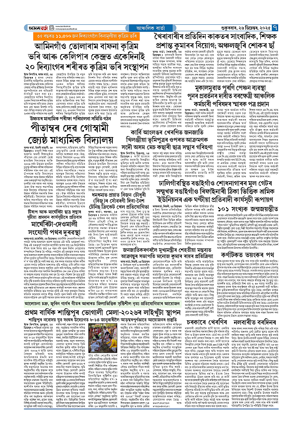 26-12-2025 Page: 7 December 26, 2025 Asom Barta Page 1Page 2Page 3Page 4Page 5Page 6Page 7Page 8 Thumbnails × 26-12-2025 Page 1Page 2Page 3Page 4Page 5Page 6Page 7Page 8 Full PDF << First << 6 7 >> Last >> << First << 7 >> Last >> Hide Page 1Page 2Page 3Page 4Page 5Page 6Page 7Page 8