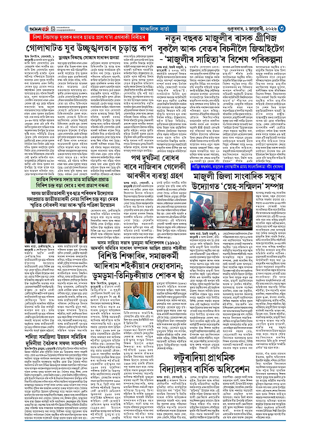02-01-2026 Page: 3 January 02, 2026 Asom Barta Page 1Page 2Page 3Page 4Page 5Page 6Page 7Page 8 Thumbnails × 02-01-2026 Page 1Page 2Page 3Page 4Page 5Page 6Page 7Page 8 Full PDF << First << 2 3 >> Last >> << First << 3 >> Last >> Hide Page 1Page 2Page 3Page 4Page 5Page 6Page 7Page 8