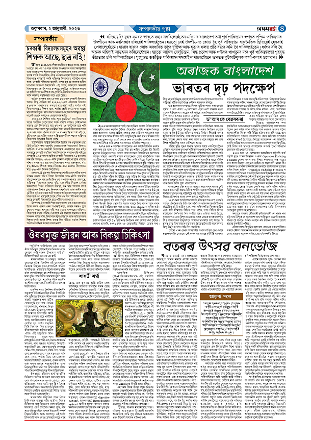 02-01-2026 Page: 4 January 02, 2026 Asom Barta Page 1Page 2Page 3Page 4Page 5Page 6Page 7Page 8 Thumbnails × 02-01-2026 Page 1Page 2Page 3Page 4Page 5Page 6Page 7Page 8 Full PDF << First << 3 4 >> Last >> << First << 4 >> Last >> Hide Page 1Page 2Page 3Page 4Page 5Page 6Page 7Page 8