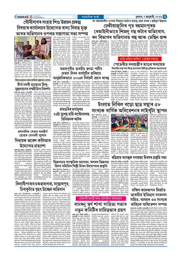 07-01-2026 Page: 3 January 07, 2026 Asom Barta Page 1Page 2Page 3Page 4Page 5Page 6Page 7Page 8 Thumbnails × 07-01-2026 Page 1Page 2Page 3Page 4Page 5Page 6Page 7Page 8 Full PDF << First << 2 3 >> Last >> << First << 3 >> Last >> Hide Page 1Page 2Page 3Page 4Page 5Page 6Page 7Page 8