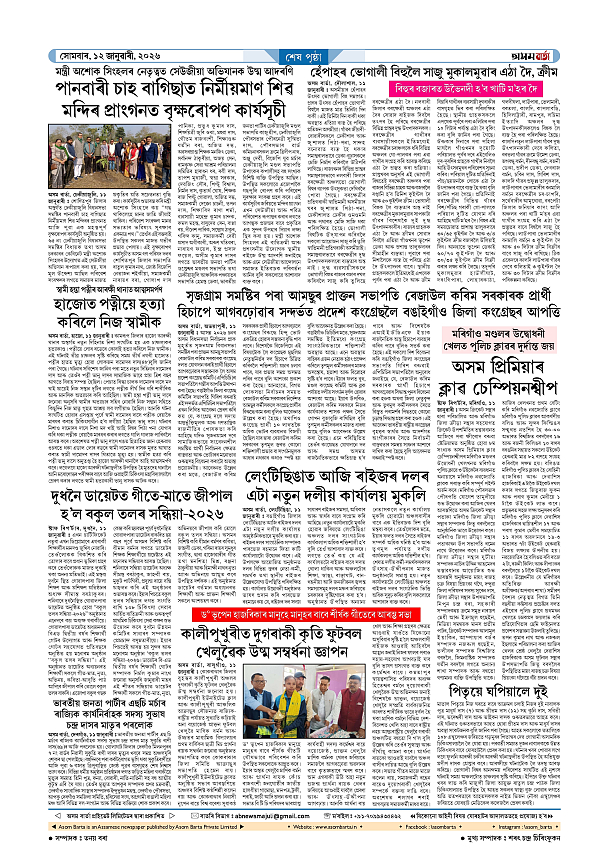 12-01-2026 Page: 8 January 12, 2026 Asom Barta Page 1Page 2Page 3Page 4Page 5Page 6Page 7Page 8 Thumbnails × 12-01-2026 Page 1Page 2Page 3Page 4Page 5Page 6Page 7Page 8 Full PDF << First << 7 8 >> Last >> << First << 8 >> Last >> Hide Page 1Page 2Page 3Page 4Page 5Page 6Page 7Page 8