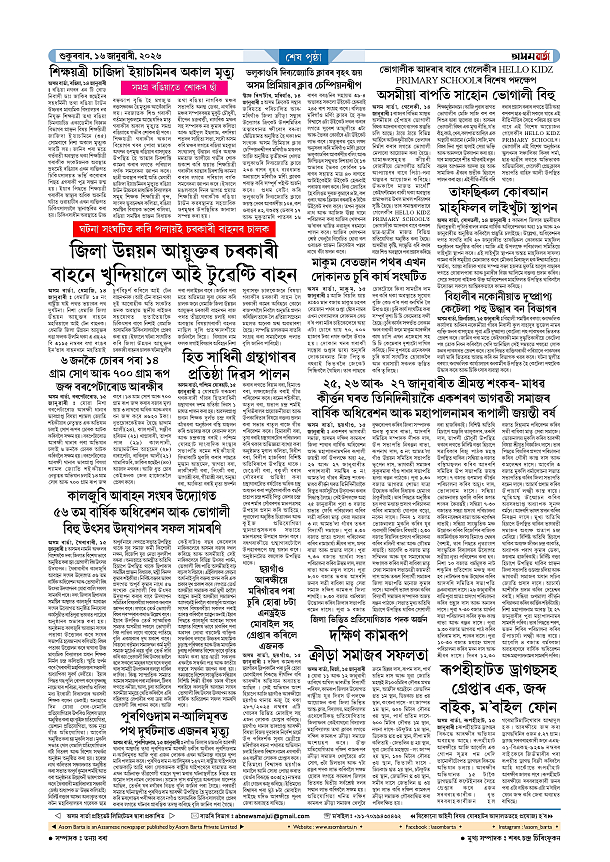 16-01-2026 Page: 8 January 16, 2026 Asom Barta Page 1Page 2Page 3Page 4Page 5Page 6Page 7Page 8 Thumbnails × 16-01-2026 Page 1Page 2Page 3Page 4Page 5Page 6Page 7Page 8 Full PDF << First << 7 8 >> Last >> << First << 8 >> Last >> Hide Page 1Page 2Page 3Page 4Page 5Page 6Page 7Page 8