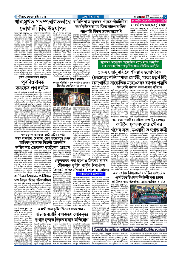 17-01-2026 Page: 2 January 17, 2026 Asom Barta Page 1Page 2Page 3Page 4Page 5Page 6Page 7Page 8 Thumbnails × 17-01-2026 Page 1Page 2Page 3Page 4Page 5Page 6Page 7Page 8 Full PDF << First << 1 2 >> Last >> << First << 2 >> Last >> Hide Page 1Page 2Page 3Page 4Page 5Page 6Page 7Page 8