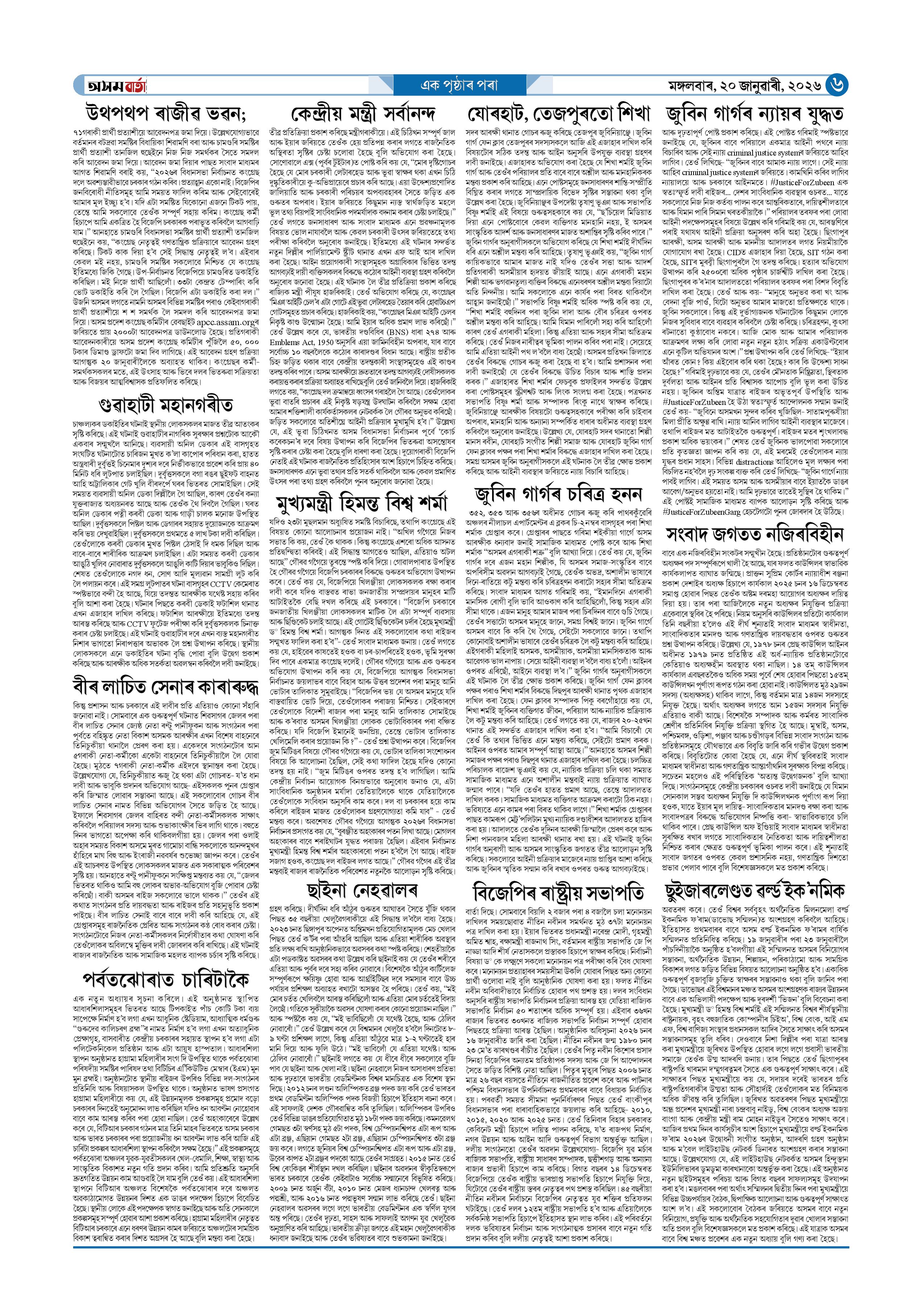 20-01-2026 Page: 6 January 20, 2026 Asom Barta Page 1Page 2Page 3Page 4Page 5Page 6Page 7Page 8 Thumbnails × 20-01-2026 Page 1Page 2Page 3Page 4Page 5Page 6Page 7Page 8 Full PDF << First << 5 6 >> Last >> << First << 6 >> Last >> Hide Page 1Page 2Page 3Page 4Page 5Page 6Page 7Page 8