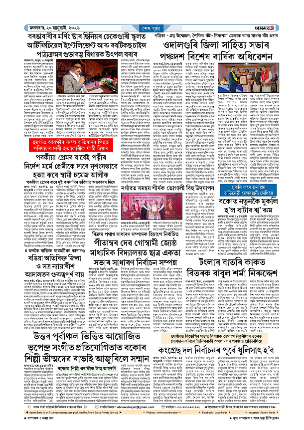 20-01-2026 Page: 8 January 20, 2026 Asom Barta Page 1Page 2Page 3Page 4Page 5Page 6Page 7Page 8 Thumbnails × 20-01-2026 Page 1Page 2Page 3Page 4Page 5Page 6Page 7Page 8 Full PDF << First << 7 8 >> Last >> << First << 8 >> Last >> Hide Page 1Page 2Page 3Page 4Page 5Page 6Page 7Page 8