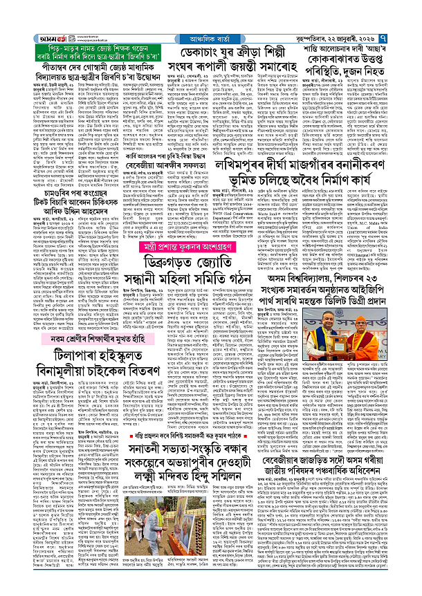 22-01-2026 Page: 7 January 22, 2026 Asom Barta Page 1Page 2Page 3Page 4Page 5Page 6Page 7Page 8 Thumbnails × 22-01-2026 Page 1Page 2Page 3Page 4Page 5Page 6Page 7Page 8 Full PDF << First << 6 7 >> Last >> << First << 7 >> Last >> Hide Page 1Page 2Page 3Page 4Page 5Page 6Page 7Page 8