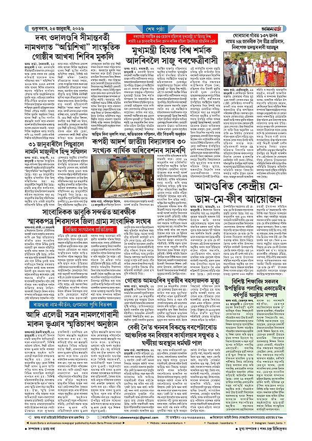 23-01-2026 Page: 9 January 23, 2026 Asom Barta Page 1Page 2Page 3Page 4Page 5Page 6Page 7Page 8Page 9 Thumbnails × 23-01-2026 Page 1Page 2Page 3Page 4Page 5Page 6Page 7Page 8Page 9 Full PDF << First << 8 9 >> Last >> << First << 9 >> Last >> Hide Page 1Page 2Page 3Page 4Page 5Page 6Page 7Page 8Page 9