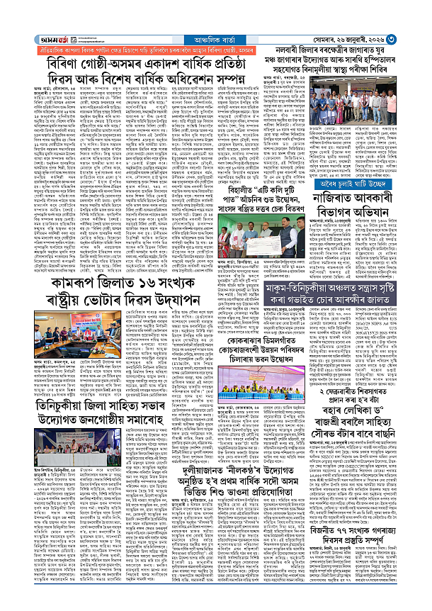 26-01-2026 Page: 3 January 26, 2026 Asom Barta Page 1Page 2Page 3Page 4Page 5Page 6Page 7Page 8 Thumbnails × 26-01-2026 Page 1Page 2Page 3Page 4Page 5Page 6Page 7Page 8 Full PDF << First << 2 3 >> Last >> << First << 3 >> Last >> Hide Page 1Page 2Page 3Page 4Page 5Page 6Page 7Page 8
