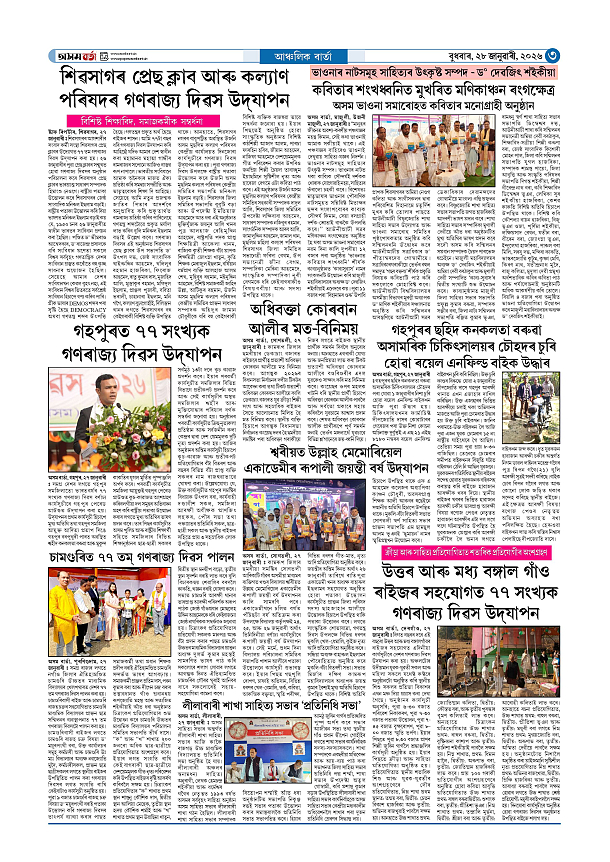 28-01-2026 Page: 3 January 28, 2026 Asom Barta Page 1Page 2Page 3Page 4Page 5Page 6Page 7 Thumbnails × 28-01-2026 Page 1Page 2Page 3Page 4Page 5Page 6Page 7 Full PDF << First << 2 3 >> Last >> << First << 3 >> Last >> Hide Page 1Page 2Page 3Page 4Page 5Page 6Page 7