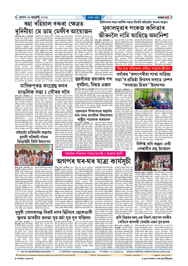 28-01-2026 Page: 7 January 28, 2026 Asom Barta Page 1Page 2Page 3Page 4Page 5Page 6Page 7 Thumbnails × 28-01-2026 Page 1Page 2Page 3Page 4Page 5Page 6Page 7 Full PDF << First << 6 7 >> Last >> << First << 7 >> Last >> Hide Page 1Page 2Page 3Page 4Page 5Page 6Page 7