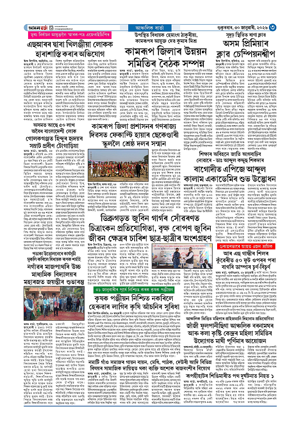 30-01-2026 Page: 3 January 30, 2026 Asom Barta Page 1Page 2Page 3Page 4Page 5Page 6 Thumbnails × 30-01-2026 Page 1Page 2Page 3Page 4Page 6Page 7 << First << 2 3 >> Last >> << First << 3 >> Last >> Hide Page 1Page 2Page 3Page 4Page 6Page 7