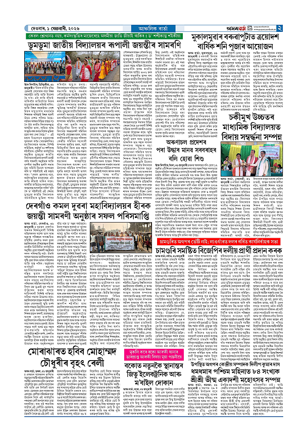 01-02-2026 Page: 2 February 01, 2026 Asom Barta Page 1Page 2Page 3Page 4Page 5Page 6Page 7Page 8 Thumbnails × 01-02-2026 Page 1Page 2Page 3Page 4Page 5Page 6Page 7Page 8 Full PDF << First << 1 2 >> Last >> << First << 2 >> Last >> Hide Page 1Page 2Page 3Page 4Page 5Page 6Page 7Page 8