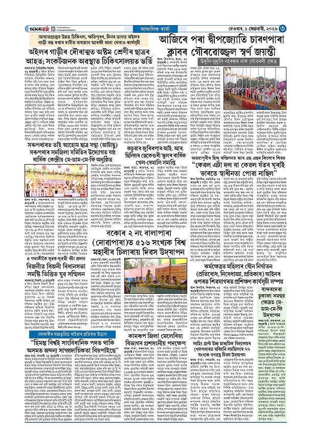 01-02-2026 Page: 3 February 01, 2026 Asom Barta Page 1Page 2Page 3Page 4Page 5Page 6Page 7Page 8 Thumbnails × 01-02-2026 Page 1Page 2Page 3Page 4Page 5Page 6Page 7Page 8 Full PDF << First << 2 3 >> Last >> << First << 3 >> Last >> Hide Page 1Page 2Page 3Page 4Page 5Page 6Page 7Page 8