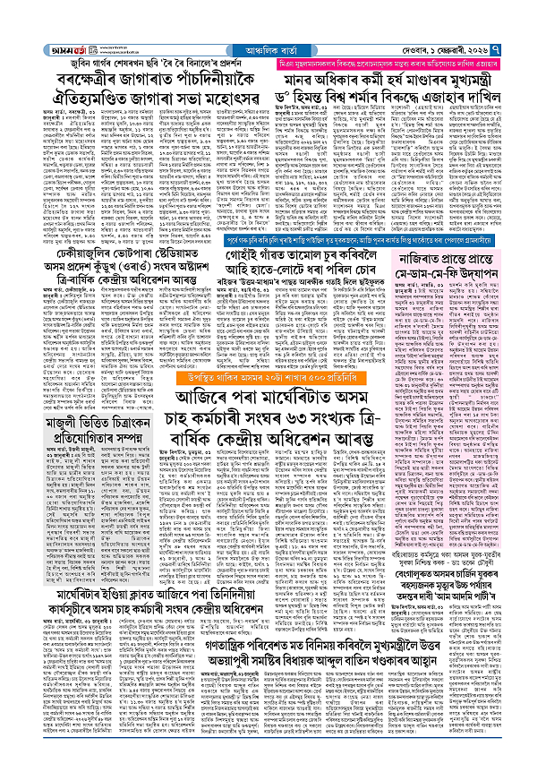 01-02-2026 Page: 7 February 01, 2026 Asom Barta Page 1Page 2Page 3Page 4Page 5Page 6Page 7Page 8 Thumbnails × 01-02-2026 Page 1Page 2Page 3Page 4Page 5Page 6Page 7Page 8 Full PDF << First << 6 7 >> Last >> << First << 7 >> Last >> Hide Page 1Page 2Page 3Page 4Page 5Page 6Page 7Page 8