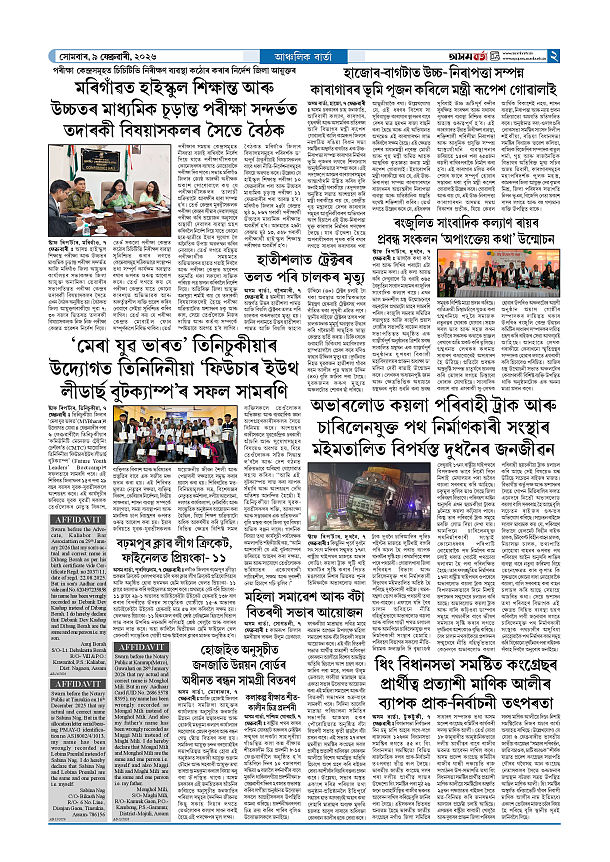 09-02-2026 Page: 2 February 09, 2026 Asom Barta Page 1Page 2Page 3Page 4Page 5Page 6Page 7Page 8 Thumbnails × 09-02-2026 Page 1Page 2Page 3Page 4Page 5Page 6Page 7Page 8 << First << 1 2 >> Last >> << First << 2 >> Last >> Hide Page 1Page 2Page 3Page 4Page 5Page 6Page 7Page 8