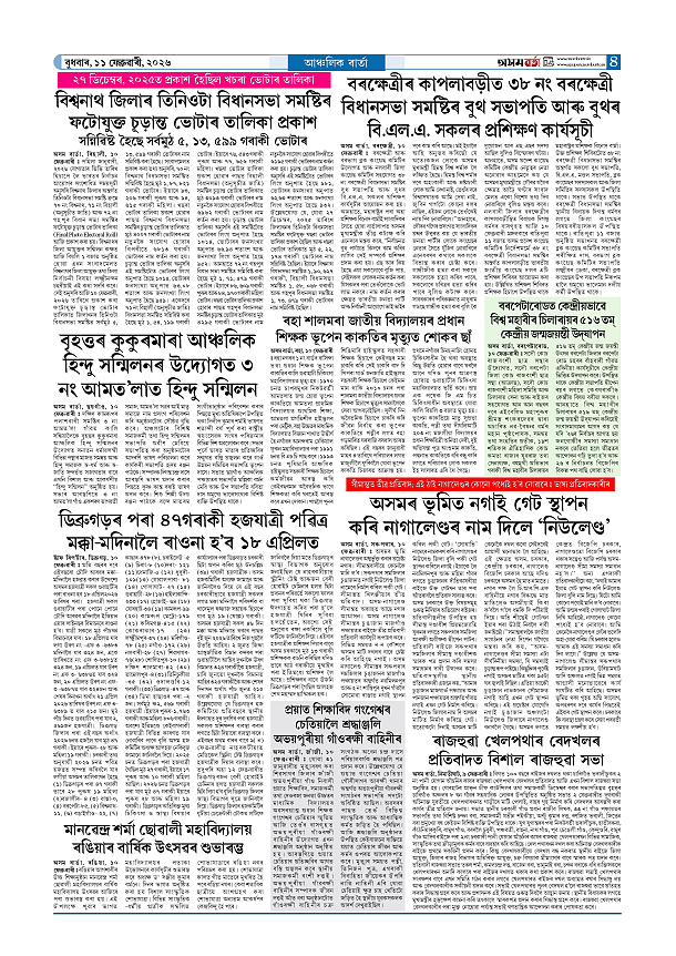 11-02-2026 Page: 4 February 11, 2026 Asom Barta Page 1Page 2Page 3Page 4Page 5Page 6Page 7Page 8 Thumbnails × 11-02-2026 Page 1Page 2Page 3Page 4Page 5Page 6Page 7Page 8 Full PDF << First << 3 4 >> Last >> << First << 4 >> Last >> Hide Page 1Page 2Page 3Page 4Page 5Page 6Page 7Page 8