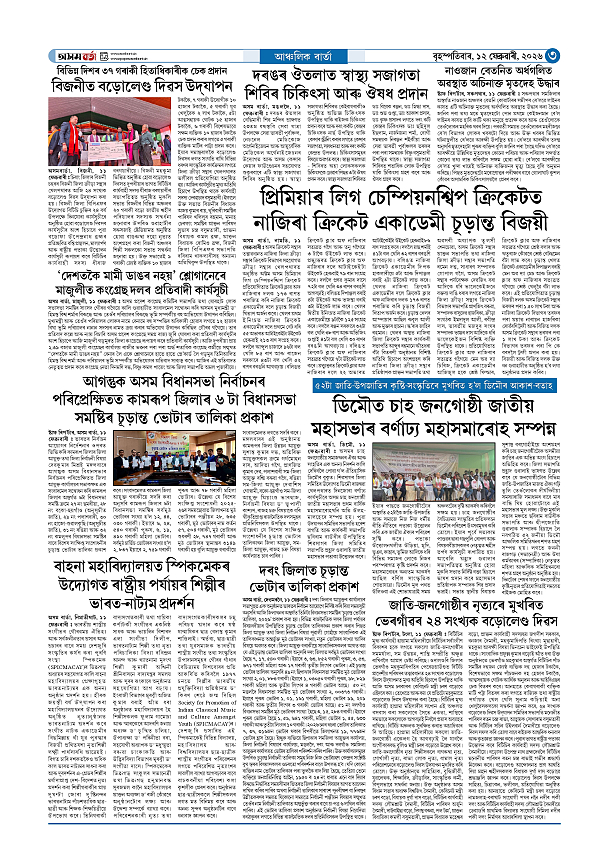 12-02-2026 Page: 3 February 12, 2026 Asom Barta Page 1Page 2Page 3Page 4Page 5Page 6Page 7 Thumbnails × 12-02-2026 Page 1Page 2Page 3Page 5Page 6Page 7Page 8 Full PDF << First << 2 3 >> Last >> << First << 3 >> Last >> Hide Page 1Page 2Page 3Page 5Page 6Page 7Page 8