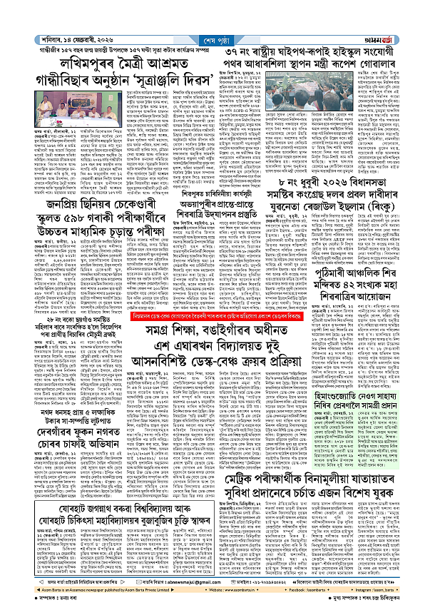 14-02-2026 Page: 8 February 14, 2026 Asom Barta Page 1Page 2Page 3Page 4Page 5Page 6Page 7Page 8 Thumbnails × 14-02-2026 Page 1Page 2Page 3Page 4Page 5Page 6Page 7Page 8 Full PDF << First << 7 8 >> Last >> << First << 8 >> Last >> Hide Page 1Page 2Page 3Page 4Page 5Page 6Page 7Page 8