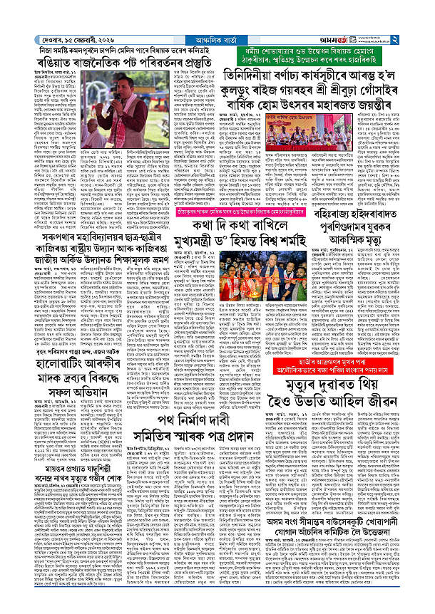 15-02-2026 Page: 2 February 15, 2026 Asom Barta Page 1Page 2Page 3Page 4Page 5Page 6Page 7Page 8 Thumbnails × 15-02-2026 Page 1Page 2Page 3Page 4Page 5Page 6Page 7Page 8 Full PDF << First << 1 2 >> Last >> << First << 2 >> Last >> Hide Page 1Page 2Page 3Page 4Page 5Page 6Page 7Page 8