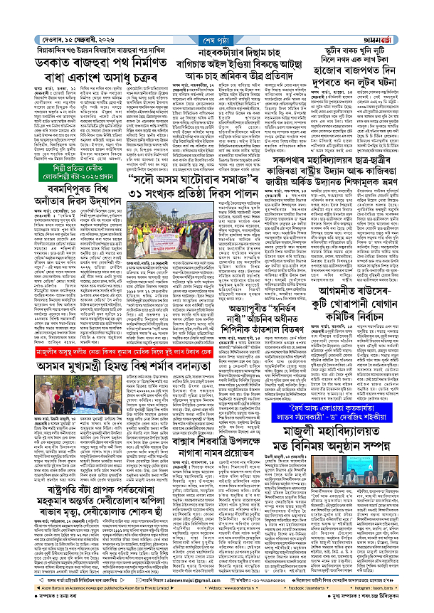 15-02-2026 Page: 8 February 15, 2026 Asom Barta Page 1Page 2Page 3Page 4Page 5Page 6Page 7Page 8 Thumbnails × 15-02-2026 Page 1Page 2Page 3Page 4Page 5Page 6Page 7Page 8 Full PDF << First << 7 8 >> Last >> << First << 8 >> Last >> Hide Page 1Page 2Page 3Page 4Page 5Page 6Page 7Page 8
