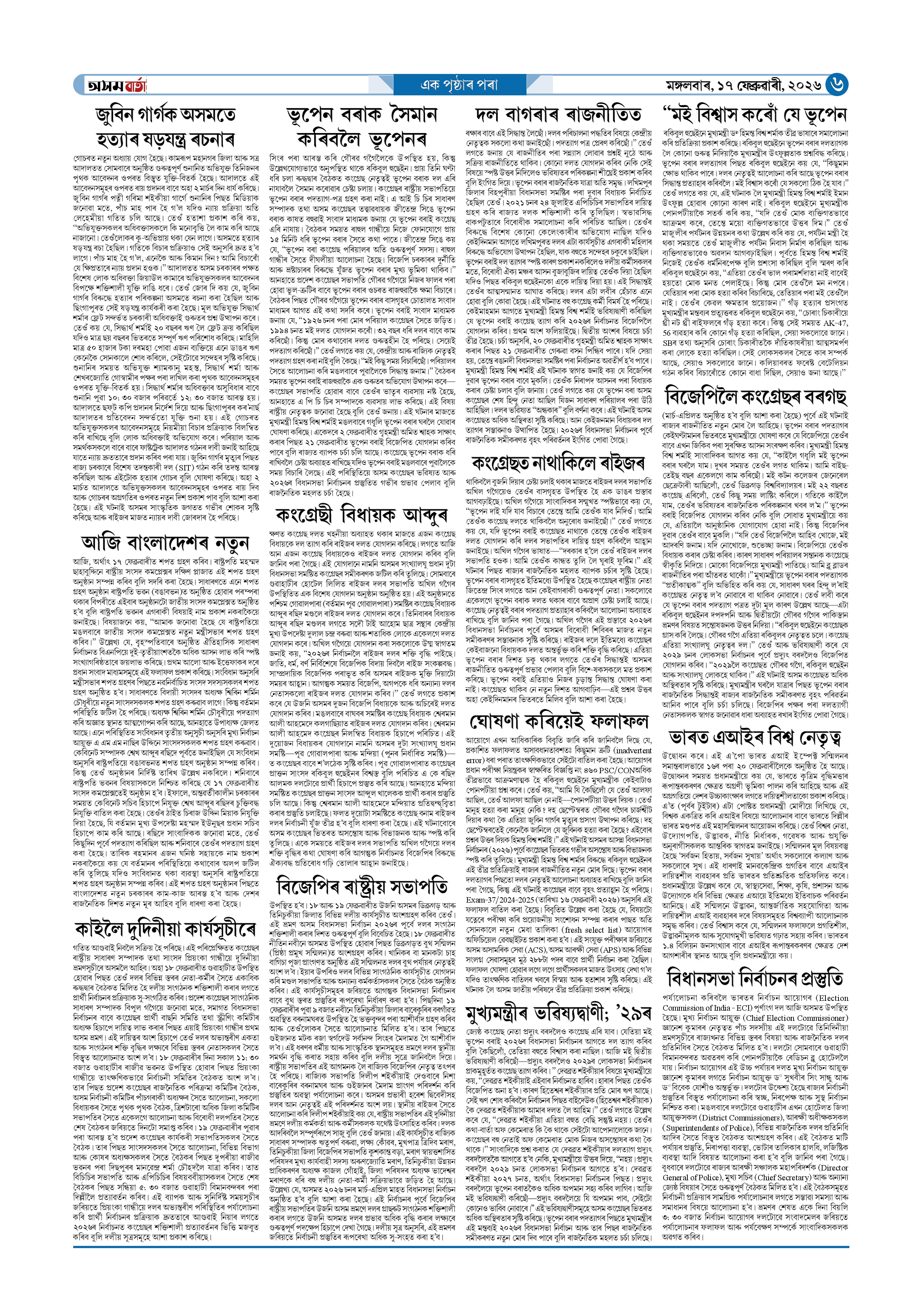 17-02-2026 Page: 6 February 17, 2026 Asom Barta Page 1Page 2Page 3Page 4Page 5Page 6Page 7Page 8Page 9 Thumbnails × 17-02-2026 Page 1Page 2Page 3Page 4Page 5Page 6Page 7Page 8Page 9 Full PDF << First << 5 6 >> Last >> << First << 6 >> Last >> Hide Page 1Page 2Page 3Page 4Page 5Page 6Page 7Page 8Page 9