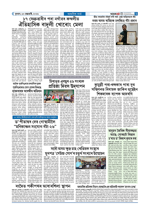 18-02-2026 Page: 2 February 18, 2026 Asom Barta Page 1Page 2Page 3Page 4Page 5Page 6Page 7Page 8 Thumbnails × 18-02-2026 Page 1Page 2Page 3Page 4Page 5Page 6Page 7Page 8 Full PDF << First << 1 2 >> Last >> << First << 2 >> Last >> Hide Page 1Page 2Page 3Page 4Page 5Page 6Page 7Page 8