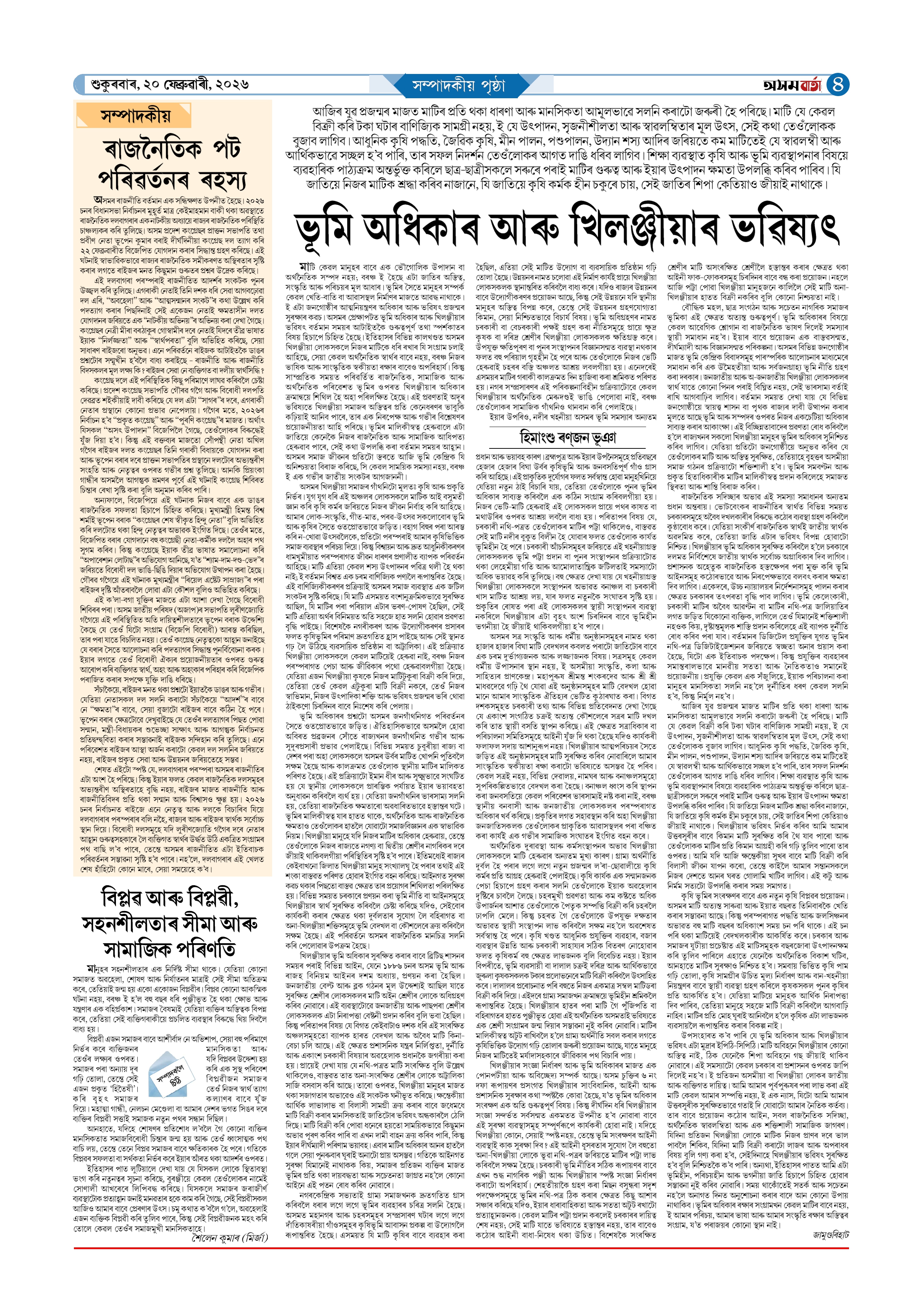 20-02-2026 Page: 4 February 20, 2026 Asom Barta Page 1Page 2Page 3Page 4Page 5Page 6Page 7Page 8 Thumbnails × 20-02-2026 Page 1Page 2Page 3Page 4Page 5Page 6Page 7Page 8 Full PDF << First << 3 4 >> Last >> << First << 4 >> Last >> Hide Page 1Page 2Page 3Page 4Page 5Page 6Page 7Page 8