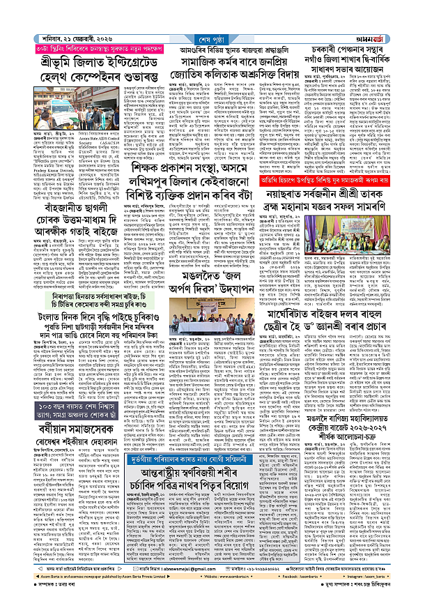 21-02-2026 Page: 8 February 21, 2026 Asom Barta Page 1Page 2Page 3Page 4Page 5Page 6Page 7Page 8 Thumbnails × 21-02-2026 Page 1Page 2Page 3Page 4Page 5Page 6Page 7Page 8 << First << 7 8 >> Last >> << First << 8 >> Last >> Hide Page 1Page 2Page 3Page 4Page 5Page 6Page 7Page 8
