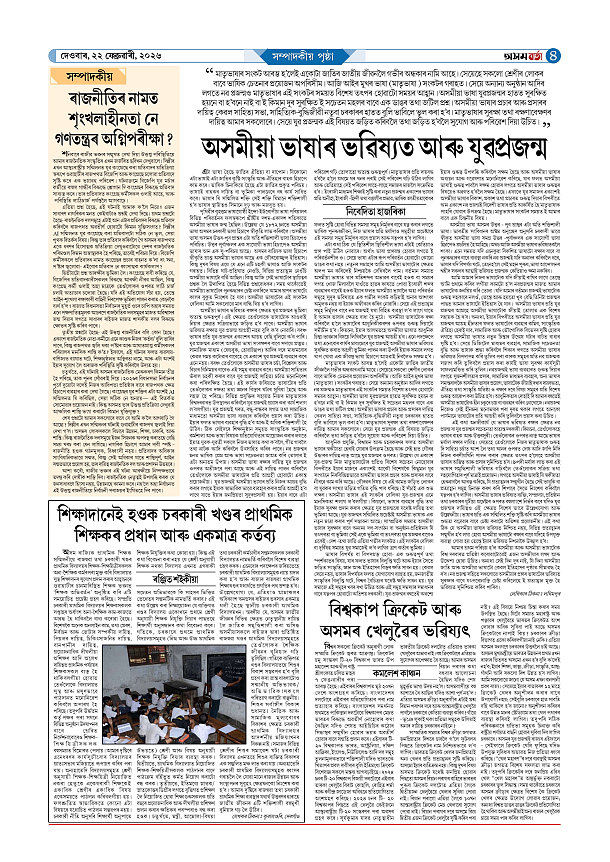 22-02-2026 Page: 4 February 22, 2026 Asom Barta Page 1Page 2Page 3Page 4Page 5Page 6Page 7Page 8 Thumbnails × 22-02-2026 Page 1Page 2Page 3Page 4Page 5Page 6Page 7Page 8 Full PDF << First << 3 4 >> Last >> << First << 4 >> Last >> Hide Page 1Page 2Page 3Page 4Page 5Page 6Page 7Page 8